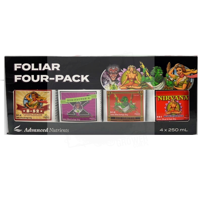 Advanced Nutrients Foliar Four-Pack to wyselekcjonowana kolekcja czterech produktów o zwiększonych korzyściach w przypadku stosowania ich w formie oprysku dolistnego.