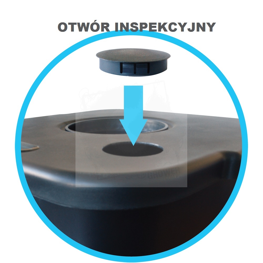 1 x Pokrywę na zbiornik / donice z wyciętym otworem na doniczkę siatkową oraz zaślepka inspekcyjna.