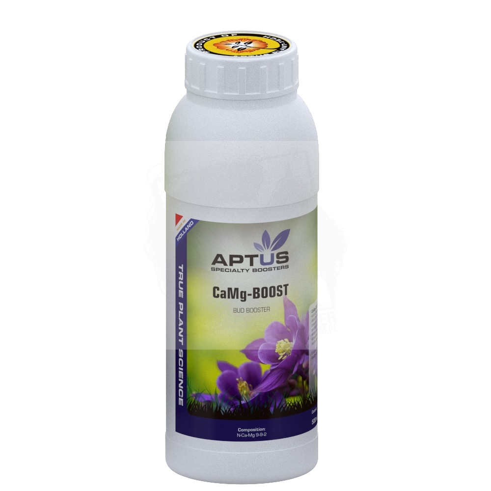 Stosuj Aptus CaMg-Boost raz w tygodniu, od trzeciego do piątego tygodnia kwitnienia. Podczas dodawania nie należy korzystać z innych boosterów fosforowych ( PK 13/14, P-Boost, Super-PK, itp. ).
