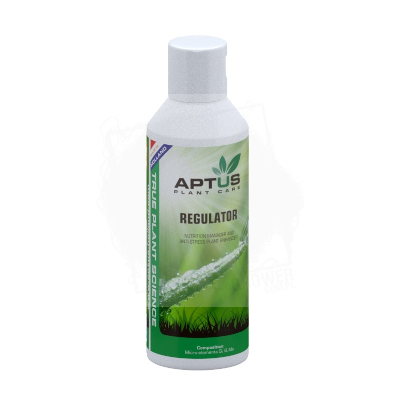 Aptus Regulator składa się z mieszaniny bio-dostępnych pierwiastków śladowych z głównym składnikiem, jakim jest krzemionka. Regulator zawiera chronioną formułę stabilizowanego kwasu krzemowego, biodostępnej części krzemionki ( Si ), która zapewnia utwardzanie ściany komórkowej, co skutkuje grubszymi łodygami, mocniejszymi liśćmi i ogólnie silniejszą rośliną. Roślina tworzy więcej włókien, co skutkuje większą ilością suchej masy. Kwas krzemowy reguluje pobieranie ważnych składników odżywczych, takich jak azot ( N ), fosfor ( P ) i potas ( K ).