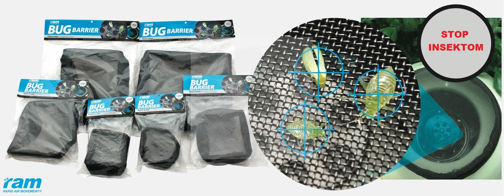 BUG BARRIER to siatkowa osłona dedykowana wentylatorom wtłaczającym powietrze do pomieszczeń uprawowych. Jej zadaniem jest zapobieganie przedostaniu się do środka insektów, owadów oraz większych cząstek kurzu.