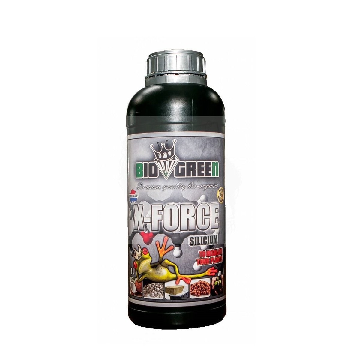 BioGreen X Force jest produktem bogatym w kwas krzemowy, a jego kompozycja jest łatwo przyswajana przez rośliny. Podawany w fazie wzrostu i kwitnienia w dowolnym środowisku ( podłożu ). Uniwersalna formuła BioGreen X Force jest przeznaczona do użytku w uprawach: gleba, hydro, coco, mapito, granulat.