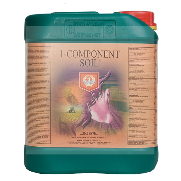Nawóz 1 Component Soil to kompozycja składników odżywczych przeznaczonych do uprawy w glebie, zapewnia roślinom składniki odżywcze przez okres wegetacji i kwitnienia. 1 Component Soil składa się z płynnych podstawowych składników mineralnych i nie zawiera substancji wypełniających takich jak nawozy stałe.