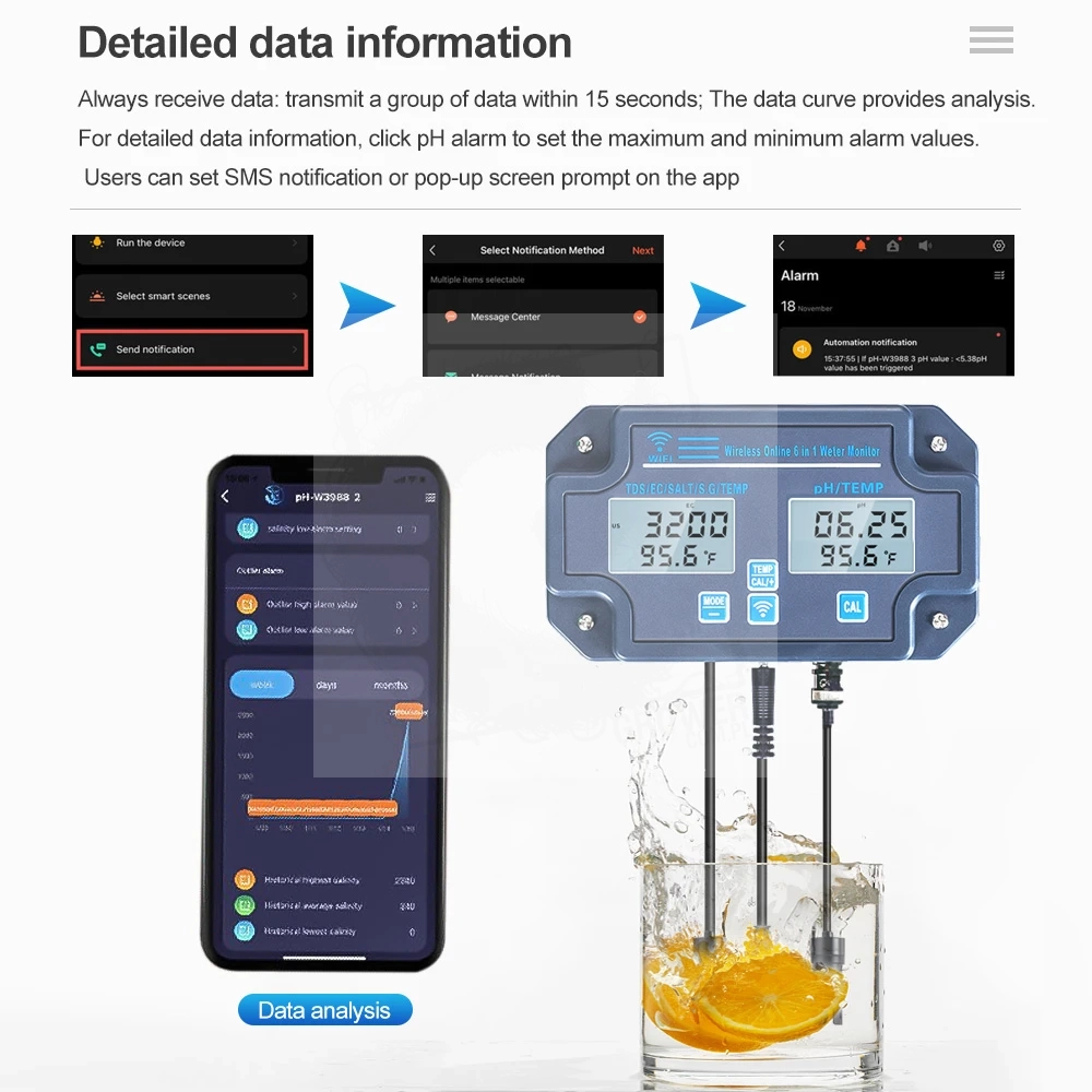 Cyfrowy tester jakości wody WiFi 6w1- pH-W3988