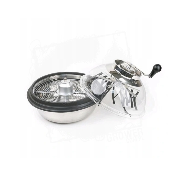 Trymer oczyszcza kwiaty z liści w 10 - 20 sekund to znaczy 20 - 30 obrotów korbą. Dzięki przezroczystej pokrywie możesz szybko sprawdzać stan trymowania.