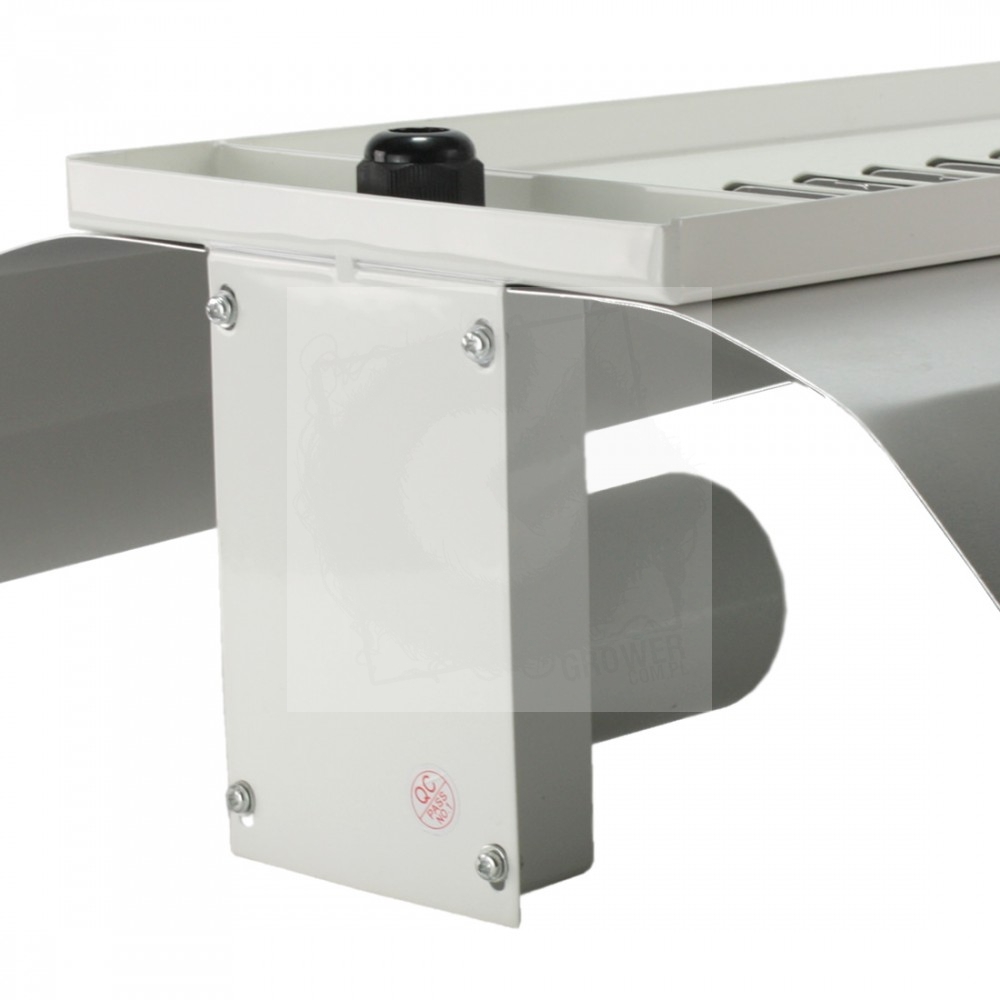 Odbłyśnik Elektrox przystosowany do lamp CFL, wykonany jest z materiałów najwyższej jakości. Jego górna powierzchnia zabudowana jest z solidnej blachy malowanej proszkowo na kolor biały, posiada szczeliny wentylacyjne które pomagają w odprowadzaniu ciepła.