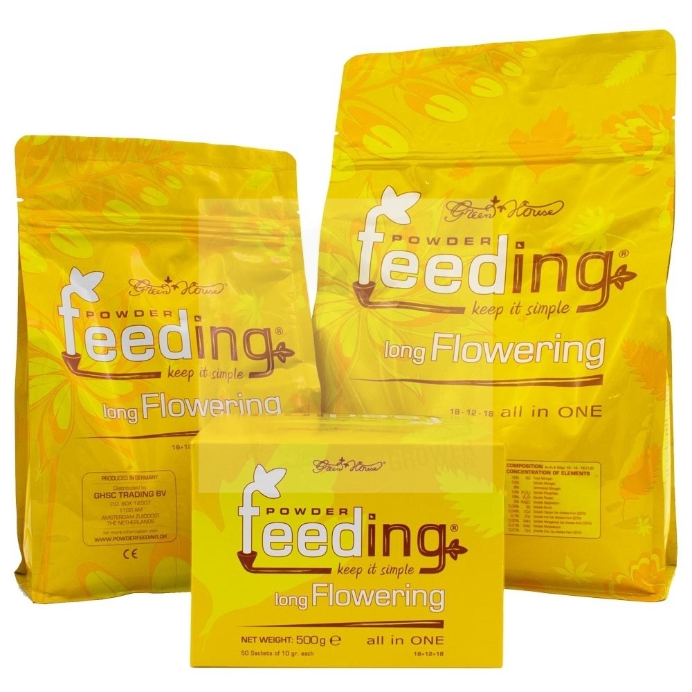 Stworzony specjalnie na fazę wzrostu i kwitnienia roślin długo kwitnących (S), nasz Long Flowering Powder-Feeding zapewnia idealną równowagę składników odżywczych dla potrzeb metabolicznych długo kwitnących roślin (S).