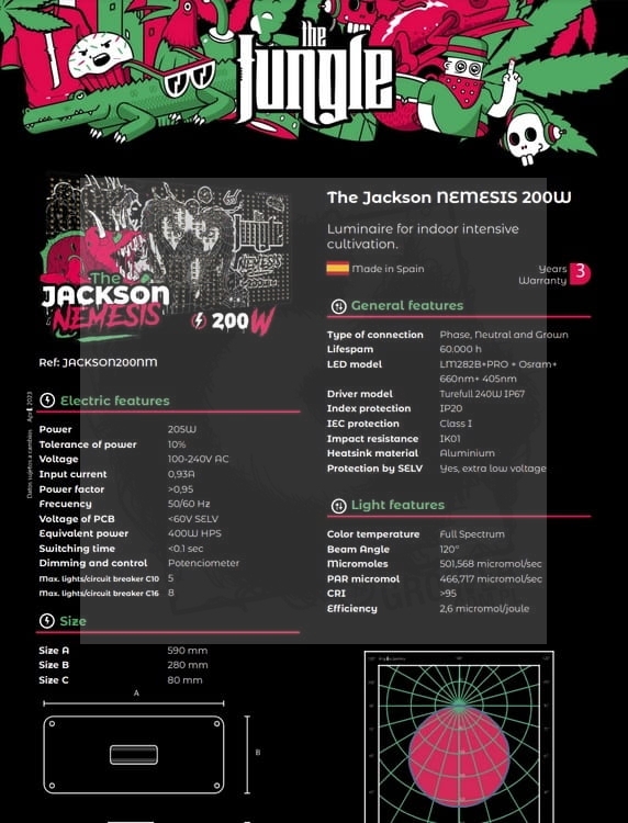 Grow The Jungle The Jackson NEMESIS 200W Lampa LED Grow nowa wersja 2023 produkowana w Hiszpanii.