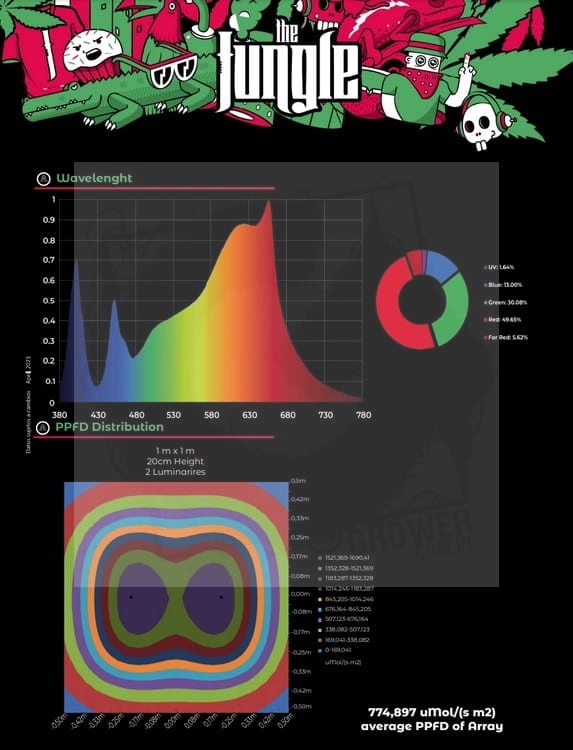 Firma Grow The Jungle używa wysokiej jakości osłonek na kable i najwyższej jakości komponentów, co oznacza, że lampa będzie działać znacznie dłużej. Jest objęta 2-letnią gwarancją