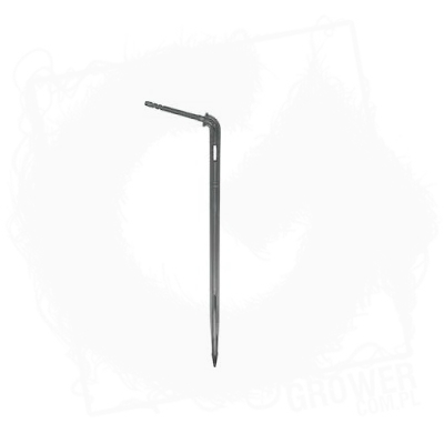 Element kątowy wciskany w wężyk 5/3 mm i wbijany w podłoże służy do spływu wody emitowanej przez kroplownik brak labiryntu warunkuje zastosowanie w konfiguracji z pojedynczym wężykiem.