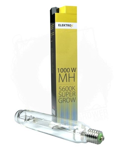 Lampa / żarówka metalohalogenowa MH 1000W Super Grow firmy Elektrox pracuje na większości fabrycznych zasilaczy do HPS. Przeznaczona do uprawy roślin, niebiesko-biała barwa światła świetnie nadaje się na fazę wzrostu, do ukorzeniania oraz roślin-matek.