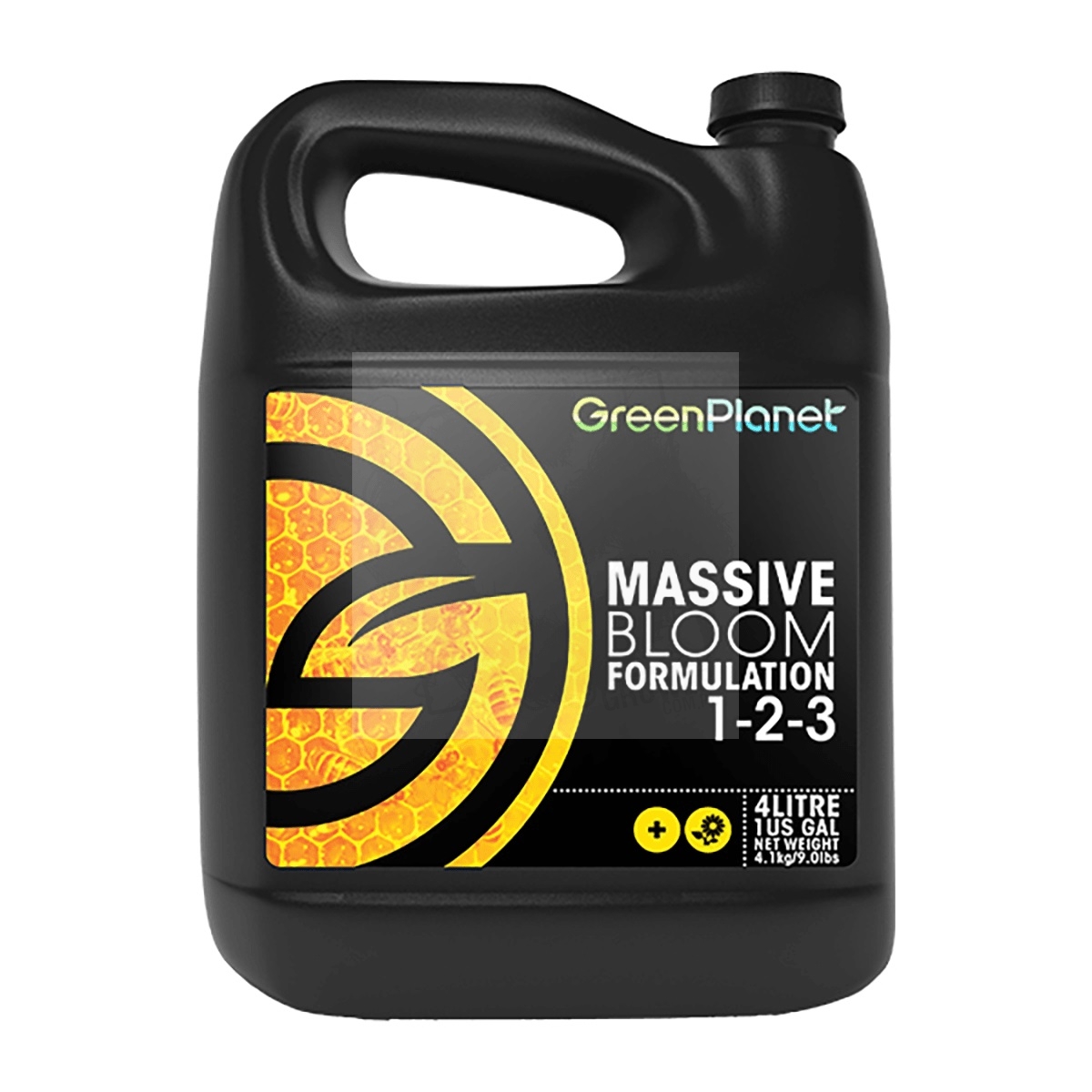 Zawiera naturalnie występujące hormony giberelinowe, zwiększając odstępy międzywęzłowe w roślinie. Pozwala to na dojrzewanie i powiększenie kwiatu do pełnego potencjału. Ponadto komponenty Massive Bloom działają agresywnie, produkując i transportując niezbędne płyny i materiały do budowy komórek bezpośrednio w kwiatach. To z kolei tworzy naprawdę masywne kępy kwiatów pełne aromatycznych olejków eterycznych. Łącząc naturalnie występujące hormony giberelinowe ze sterydowym triakontanolem ( stymulator wzrostu ) roślinnym, tempo fotosyntezy i wykorzystanie CO2 dramatycznie wzrasta.