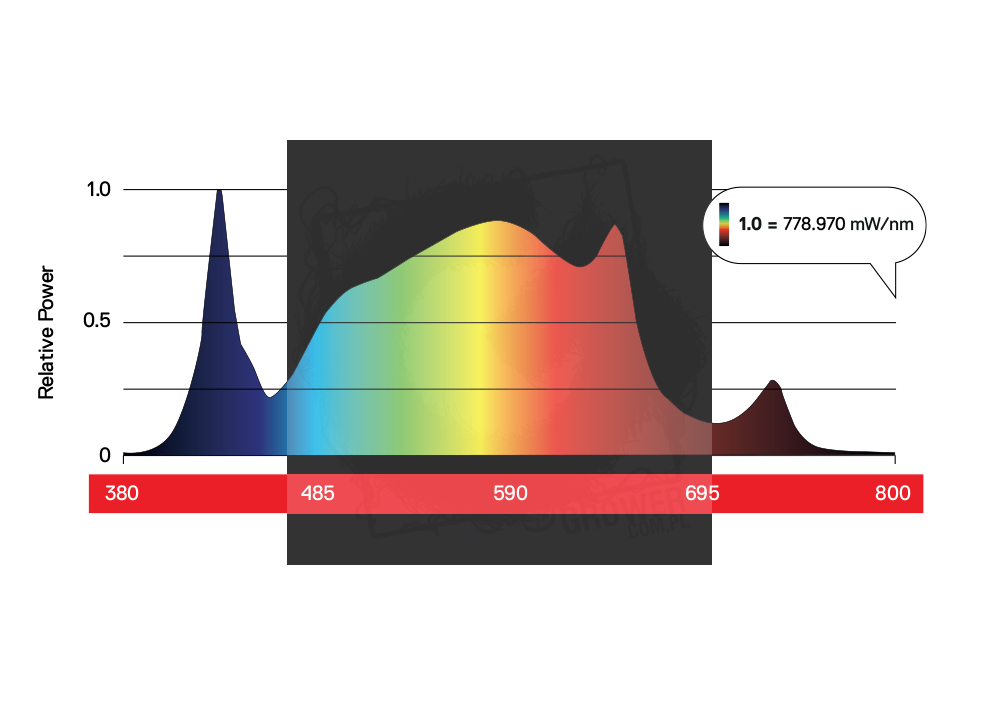 Zoptymalizowane wyjście widmowe zapewniające najlepsze światło dla wzrostu roślin, w tym Far Red