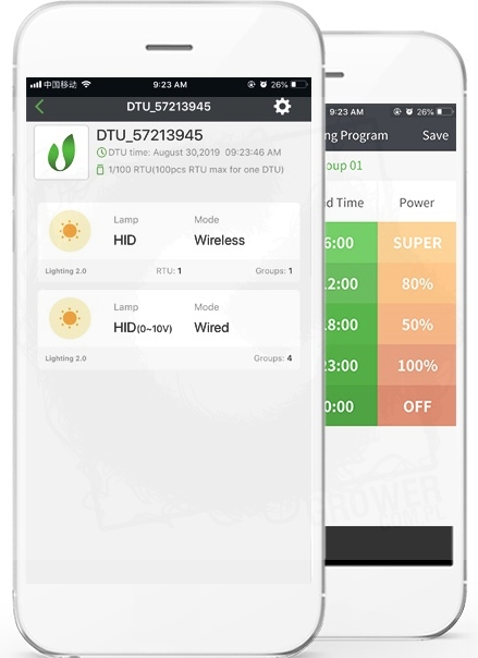 Dzięki aplikacji możesz ustawić idealne parametry wzrostu i mieć pewność, że wszystko jest zautomatyzowane. Nie musisz już ciągle chodzić przez pomieszczenie hodowlane i dokonywać odczytów z kilku różnych kontrolerów. Wystarczy otworzyć aplikację na telefon, aby monitorować lub dostosowywać ustawienia w zależności od potrzeb roślin. Oznacza to mniej czasu traconego w rosnącym środowisku, co daje mniejszą szansę zakłócenia kontrolowanego środowiska lub wprowadzenia zewnętrznych patogenów.