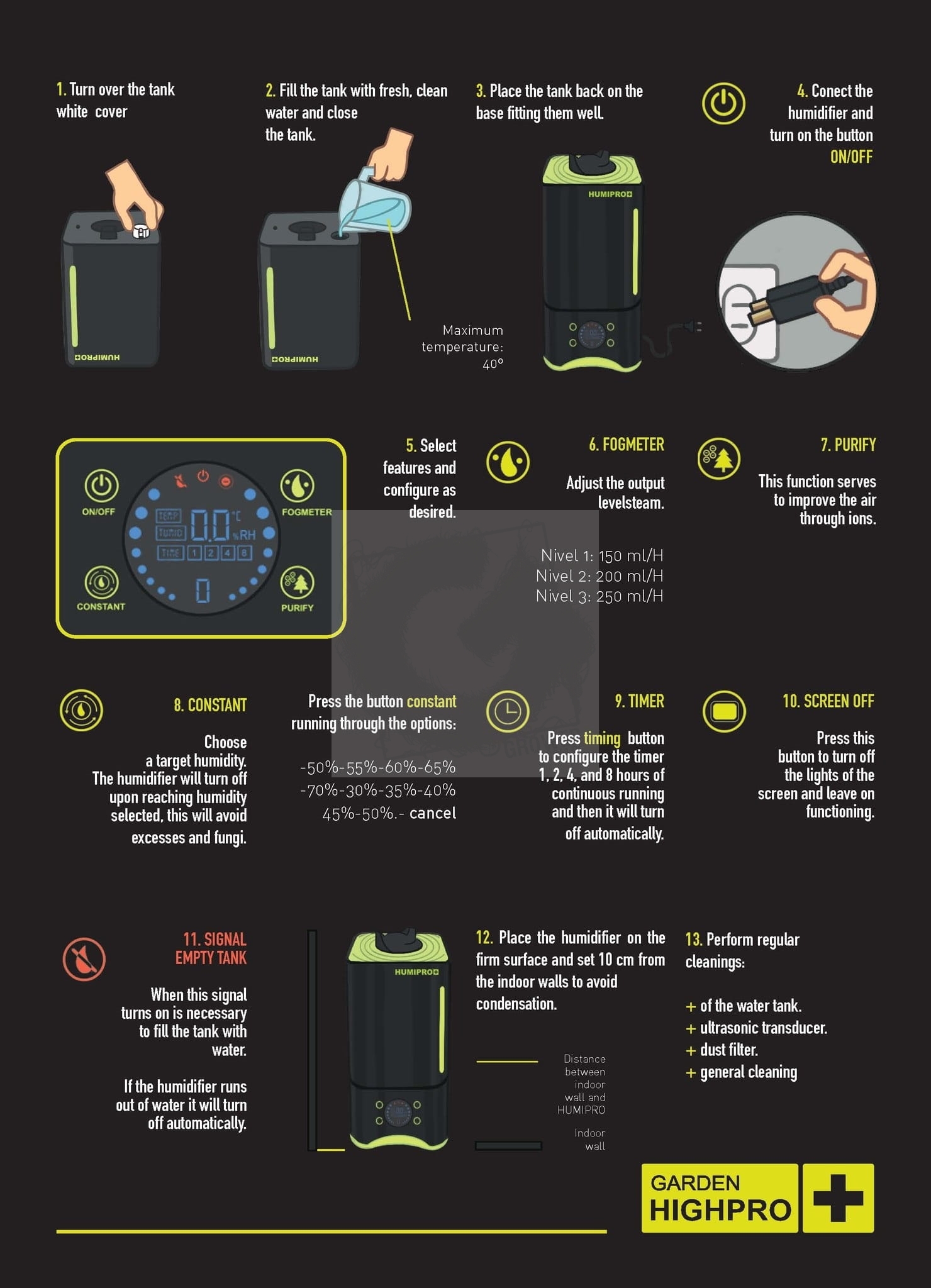 Utrzymanie odpowiedniego poziomu wilgotności w pomieszczeniach uprawowych jest bardzo ważne dla rozwoju naszych roślin. aby pomóc w stworzeniu odpowiednich warunków, co za tym idzie stałego poziomu wilgotności. Poprawia jakości powietrza dla zdrowia oraz dobrego samopoczucia. Urządzenie niezbędne do utrzymania prawidłowej wilgotności powietrza podczas uprawy roślin.