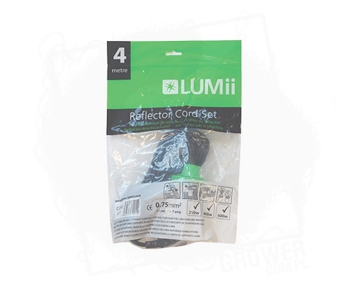 Oprawa E40 LUMII z przewodem o długości 4 metrów zakończona wtyczką męską IEC do zasilacza. Idealny do zawieszenia lampy w pozycji pionowej bez reflektora. Idealna do mocy 250W, 400W, 600W