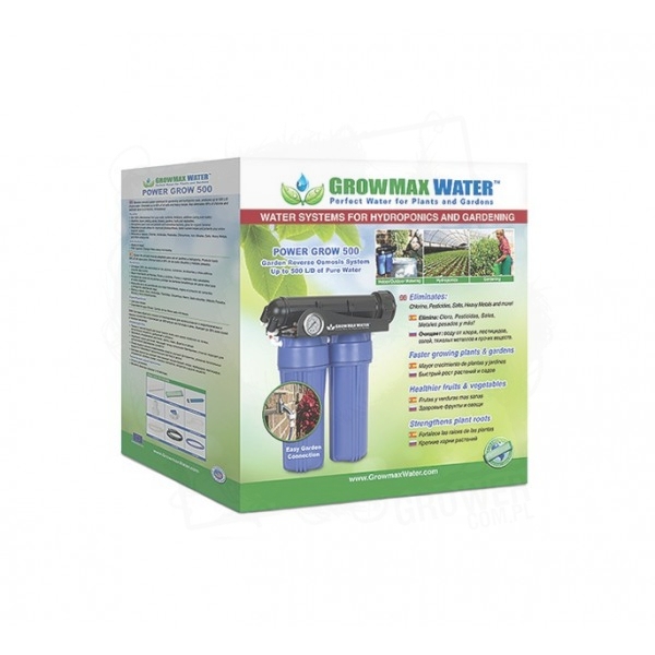 We wszystkich systemach GrowMax Water zastosowano przyjazne środowisku kokosowo-węglowe filtry, które posiadają wysoki poziom absorpcji zanieczyszczeń. Produkt ten produkuje czystą wodę w zakresie 500 litrów na dzień-20 litrów na godzinę ( do 3000 litrów w innych modelach ). Usuwa do 95% soli, metali ciężkich, chloru, herbicydy i pestycydy oraz lotne zanieczyszczenia organiczne, azotany, azotyny. Eliminuje 99% chloru i zmniejsza osad aż do 5 mikronów!