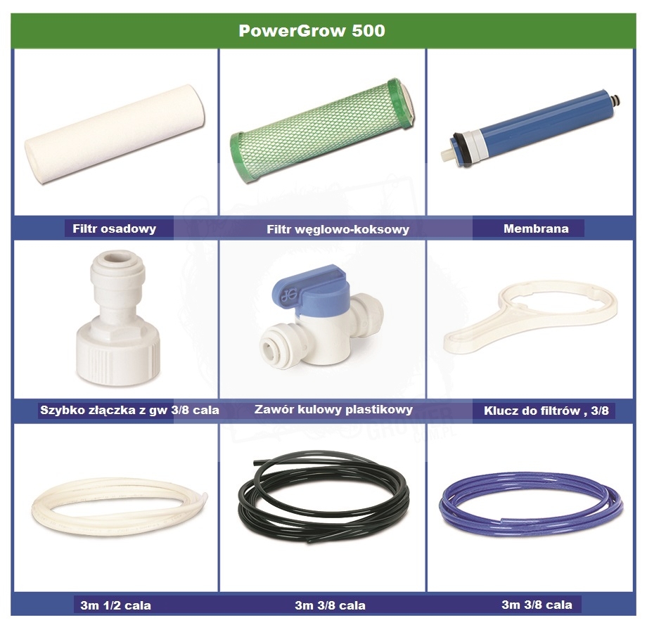 Odwrócona osmoza PowerGrow firmy GrowMax Water to kompletny, dwufazowy system odwróconej osmozy wody. Idealnie nadaję się do użytku w małych, domowych ogródkach.