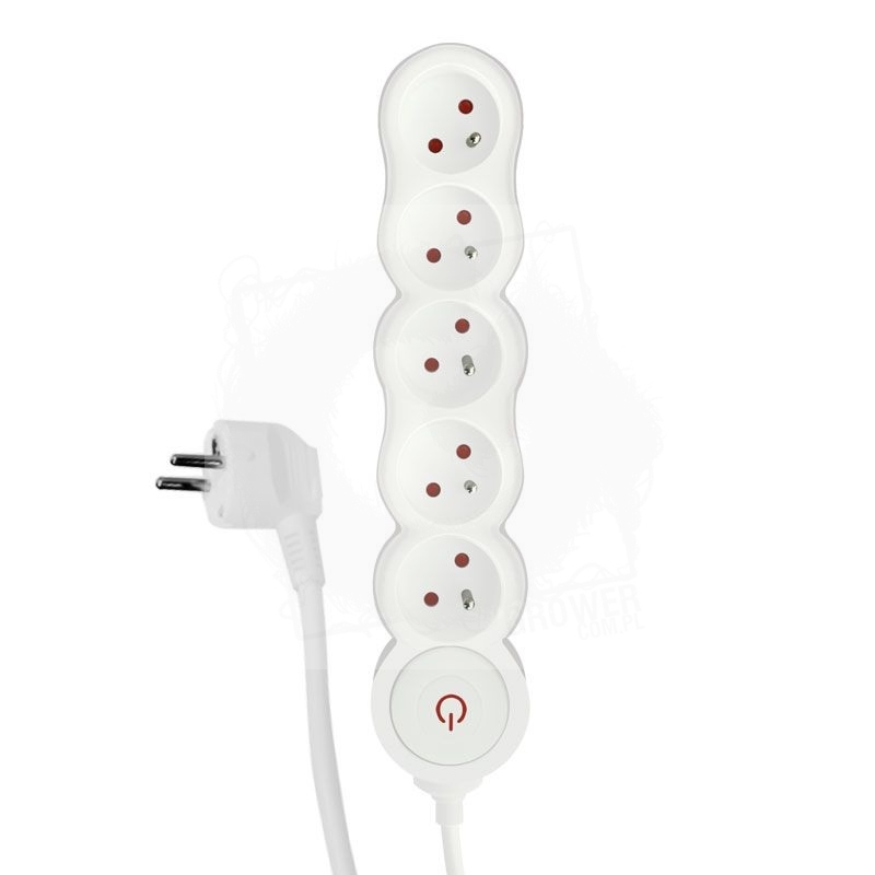 Przedłużacz z wyłącznikiem, 5 gniazd z uziemieniem, przewód 1,5 metra