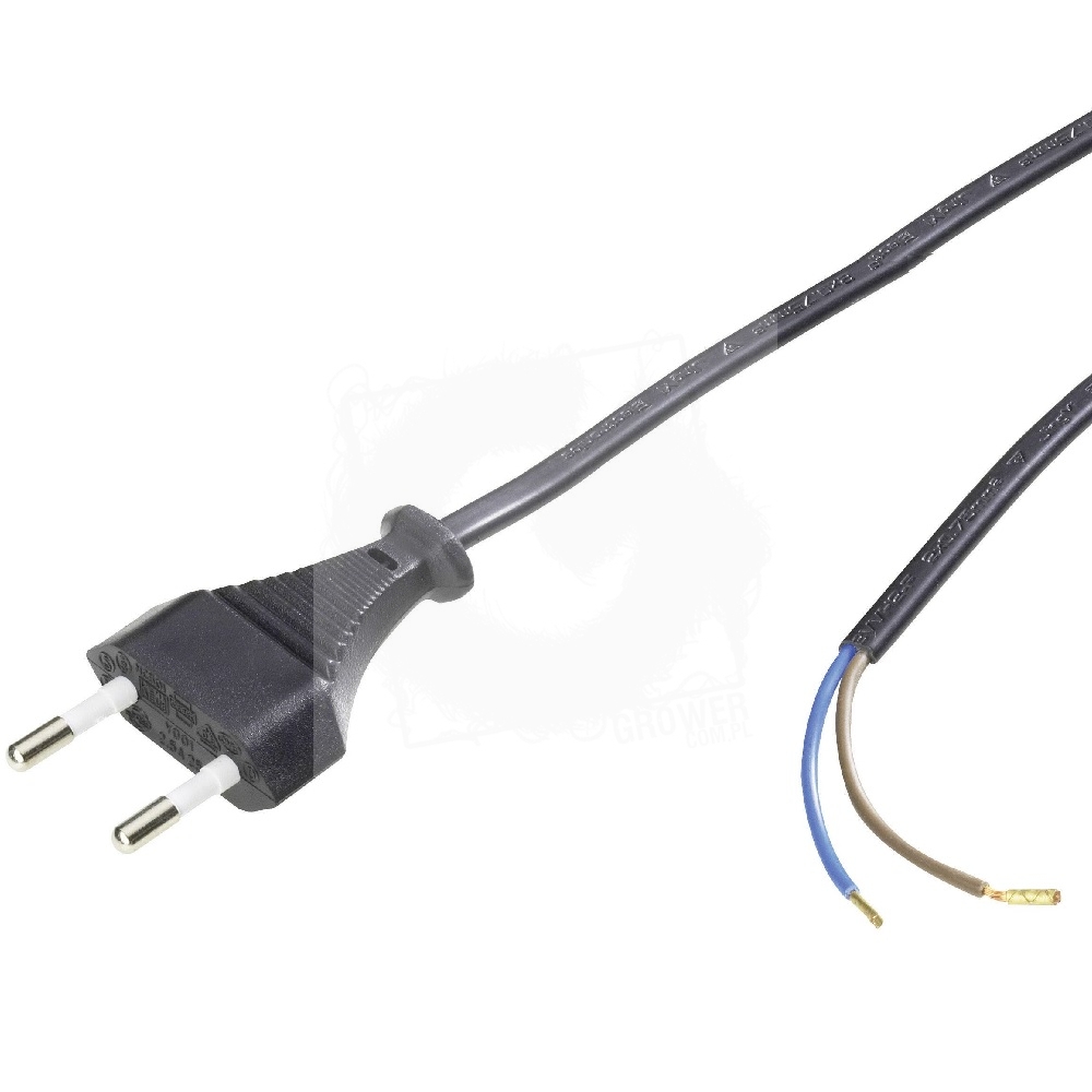 Dwużyłowy kabel sieciowy o długości 5 metrów. Świetnie nadaje się do podłączenia wentylatorów kanałowych typ: VK/VKO. Wykonany z miedzianej plecionki i polwinitowej izolacji, koloru czarnego.