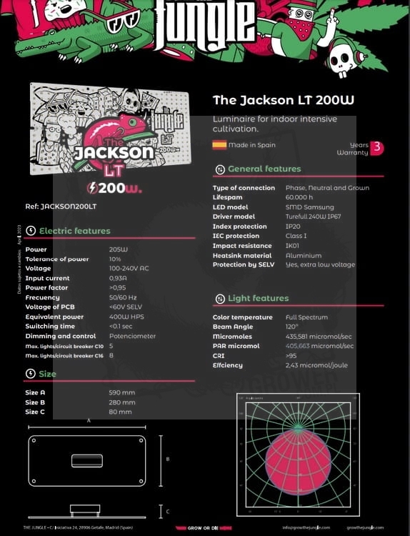 Taniej w zestawie!Grow The Jungle The Jackson 200W LITE z regulacją, full spectrum, pow. max 100x60cm