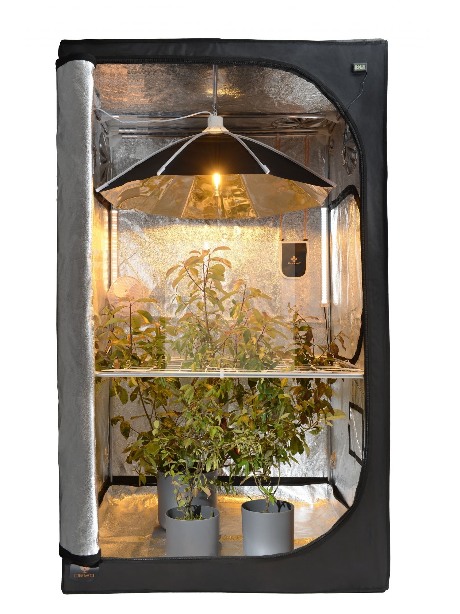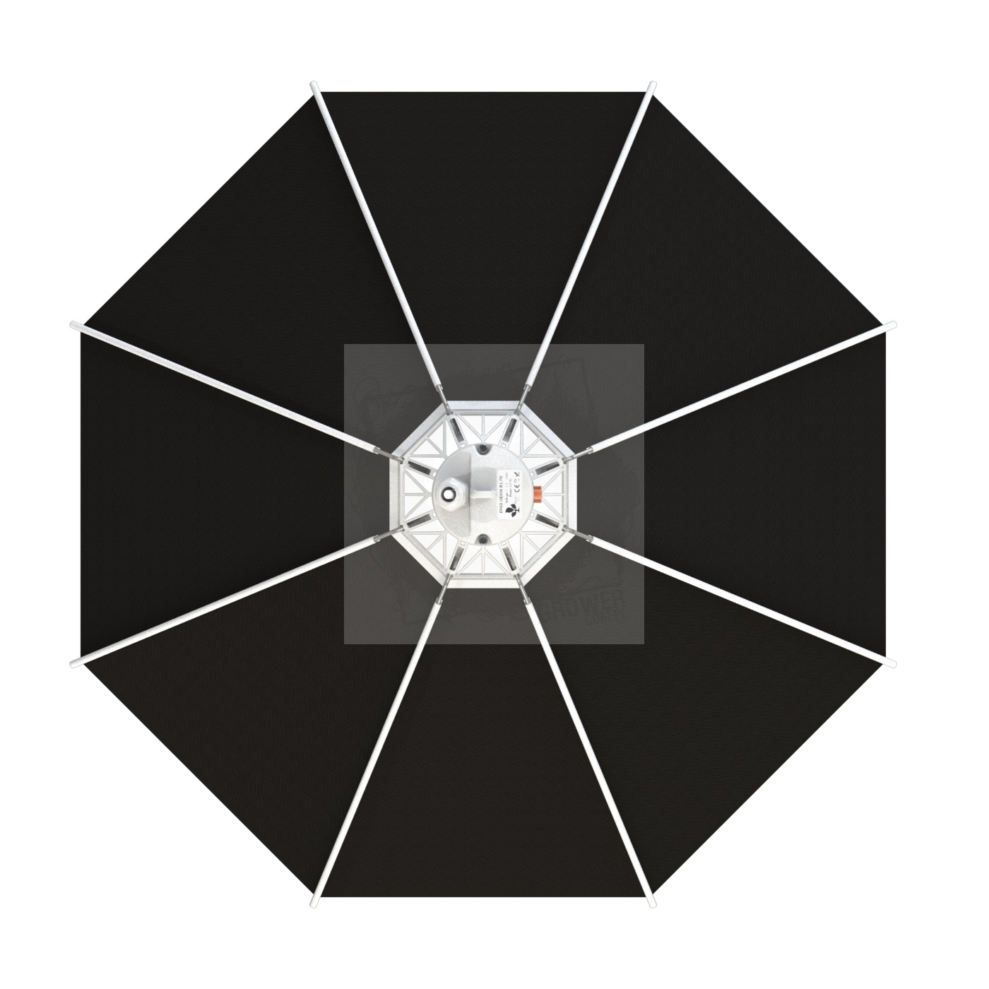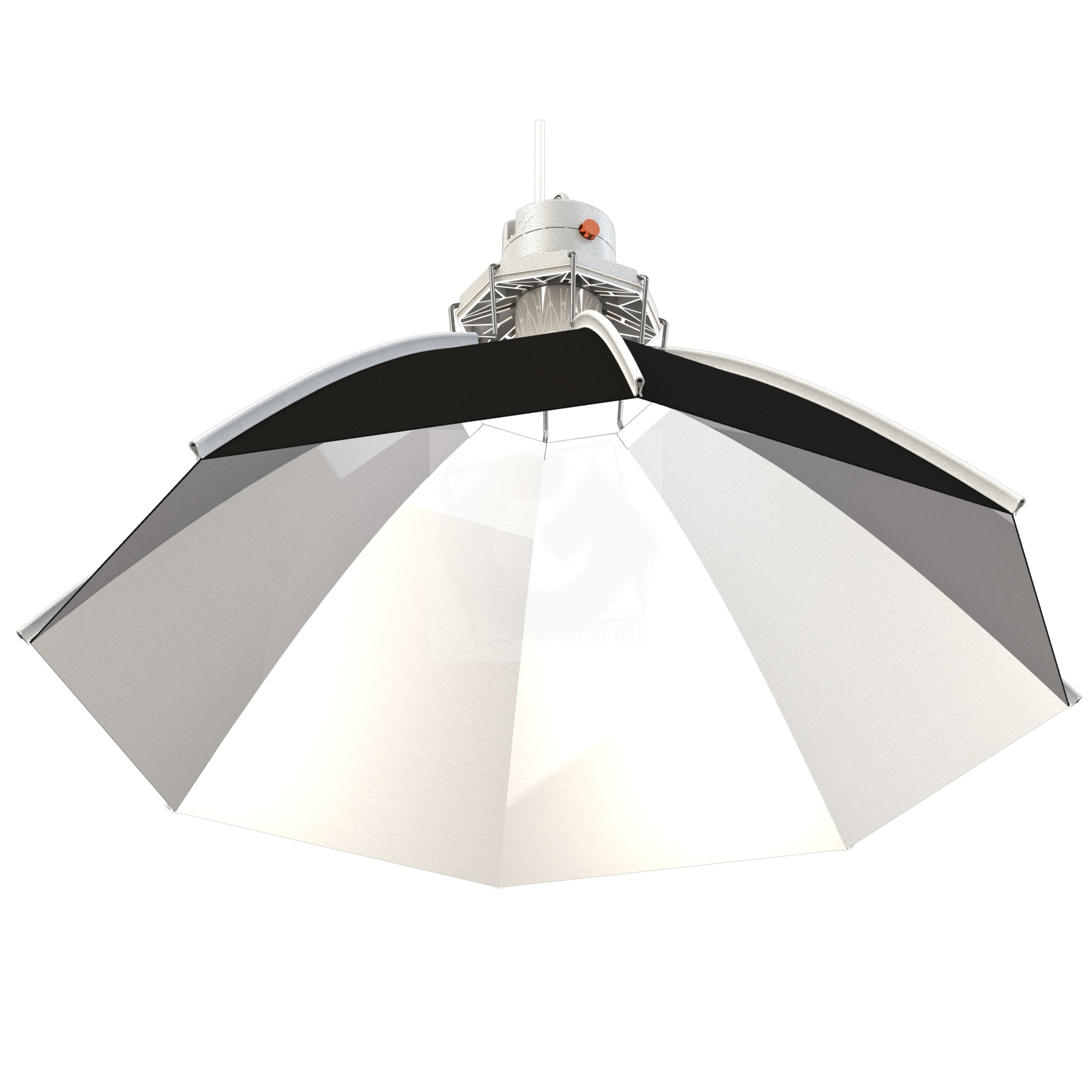 Ośmioboczne załamania odblaskowe tworzą kształt otwartego parasola o rozpiętości 60 cm, zwiększa to ilość światła w zamkniętej strukturze odbłyśnika ( jednolite rozłożenie światła ). Stwarza to również bardziej równomierny rozkład światła, a tym samym pomaga uniknąć nierównego wzrostu roślin.