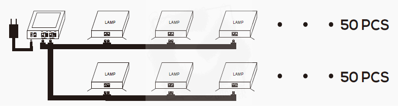 Liczba świateł na jedno wyjście maksymalnie 50 sztuk