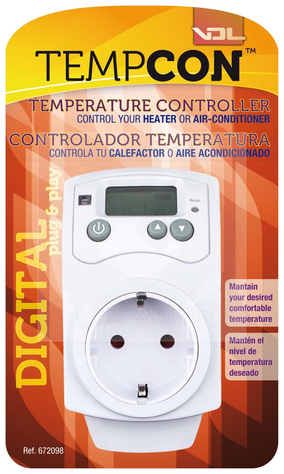Tempcon to urządzenie z gniazdem ściennym, które może kontrolować pracą urządzeń w zależności od zadanej temperatury. Służy do sterowania systemami ogrzewania lub chłodzenia w zależności od potrzeb. Automatycznie włącza i wyłącza urządzenie zgodnie z zaprogramowaną temperaturą ( zakres 5-30 °C ). W ten sposób Twoje urządzenia nie działają niepotrzebnie.