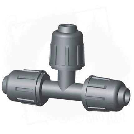 Trójnik wciskany z nakrętką do rur PE i linii kroplujących.