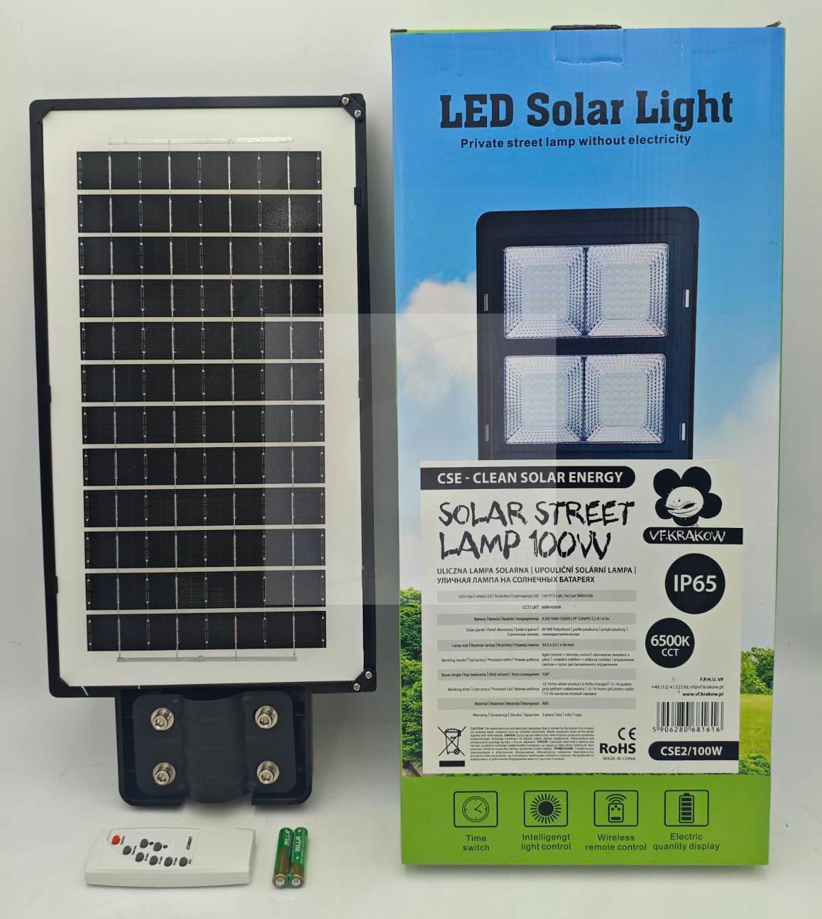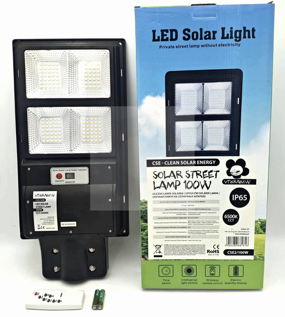 VF Uliczna lampa solarna 100W z wbudowanym panelem + pilot i czujnik ruchu oraz zmierzchu