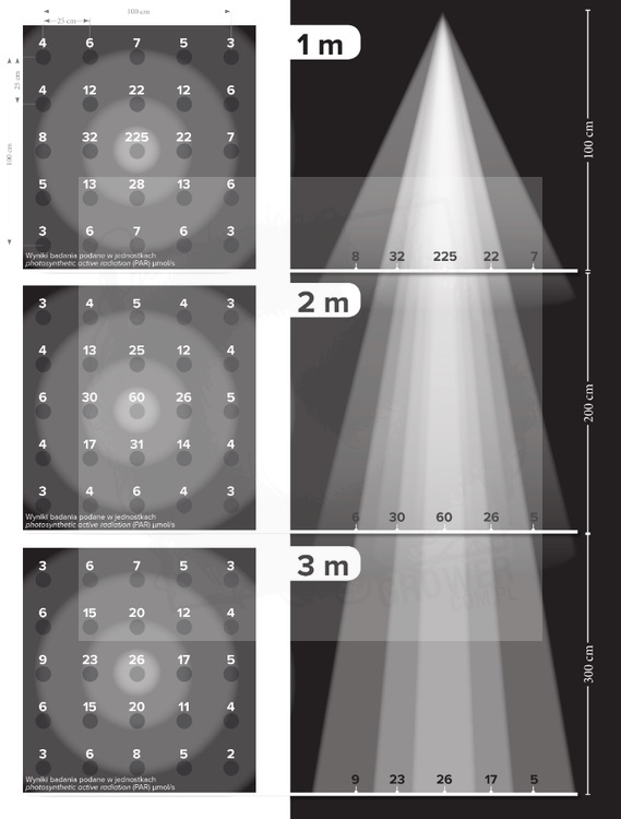 Oświetla rośliny znajdujące się w odległości nawet do 1 metra