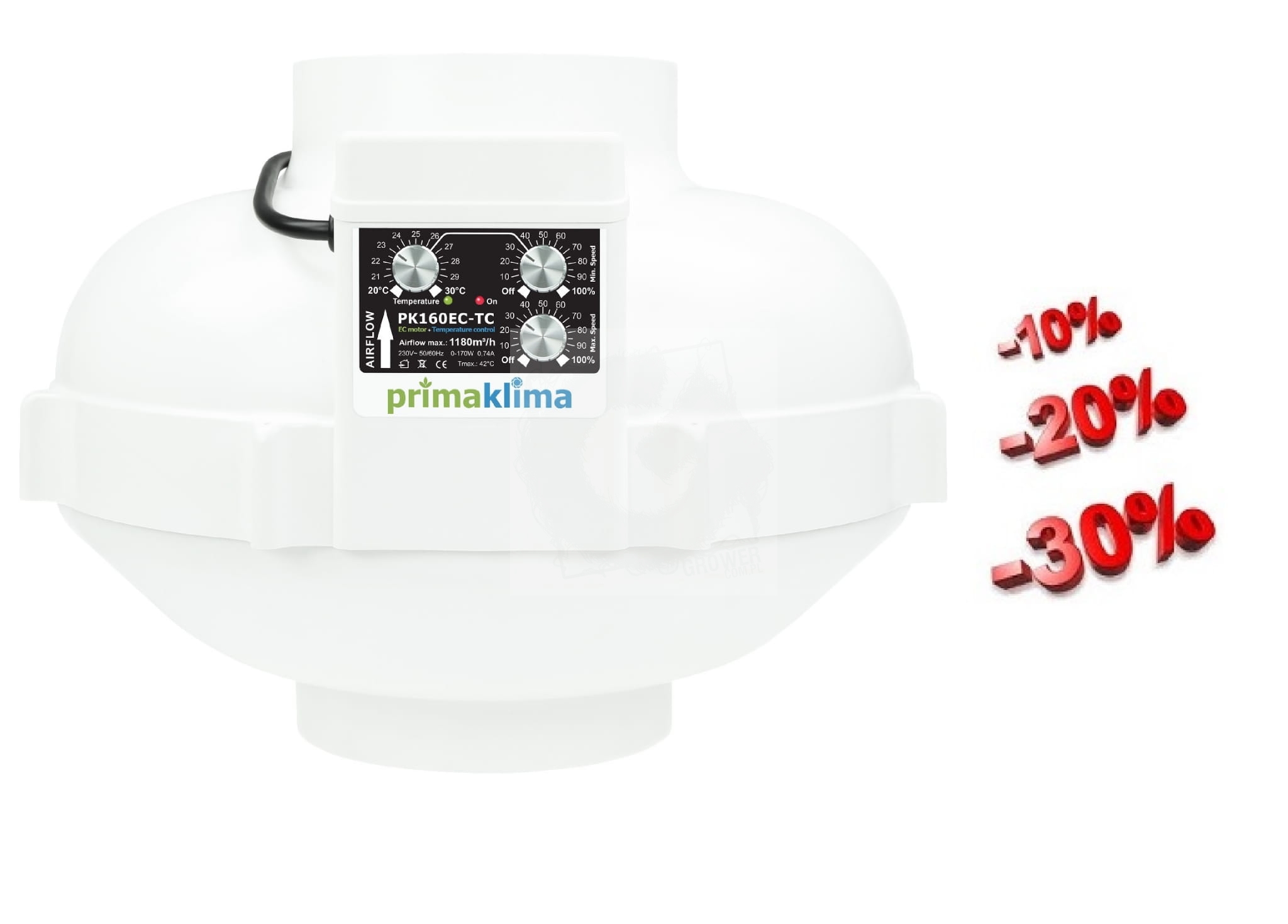 PK160EC-TC to potężny wentylator promieniowy ( rurowy ), który dzięki wbudowanej regulacji temperatury i prędkości, spełnia wszystkie potrzeby wymagających ogrodników domowych i wyznacza nowe standardy z bardzo cichym silnikiem. Silnik EC wykonany w Niemczech pochodzi z zakładów produkcyjnych firmy Ziehl-Abegg i jest polecany przez sprzedawców jako jeden z najbardziej niezawodnych silników elektrycznych na rynku.