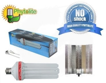Kompletny, energooszczędny zestaw do doświetlania roślin, składający się z odbłyśnika Hammered oraz lampy CFL Phytolite 200W przeznaczonej na fazę wzrostu.