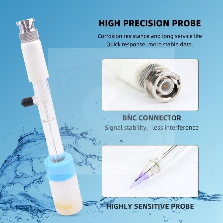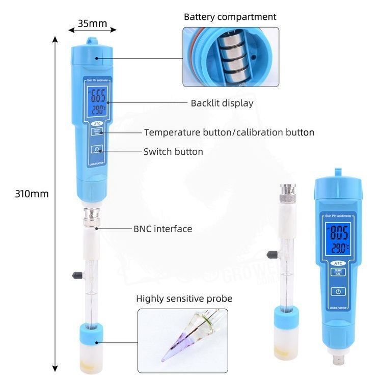 Niezawodna jakość: bardzo czuły wodoszczelny chip sondy do szybkich i dokładnych pomiarów, wyświetlacz LCD o przekątnej 1,2 cala z niebieskim podświetleniem i podwójnym wskaźnikiem wartości pH i temperatury.